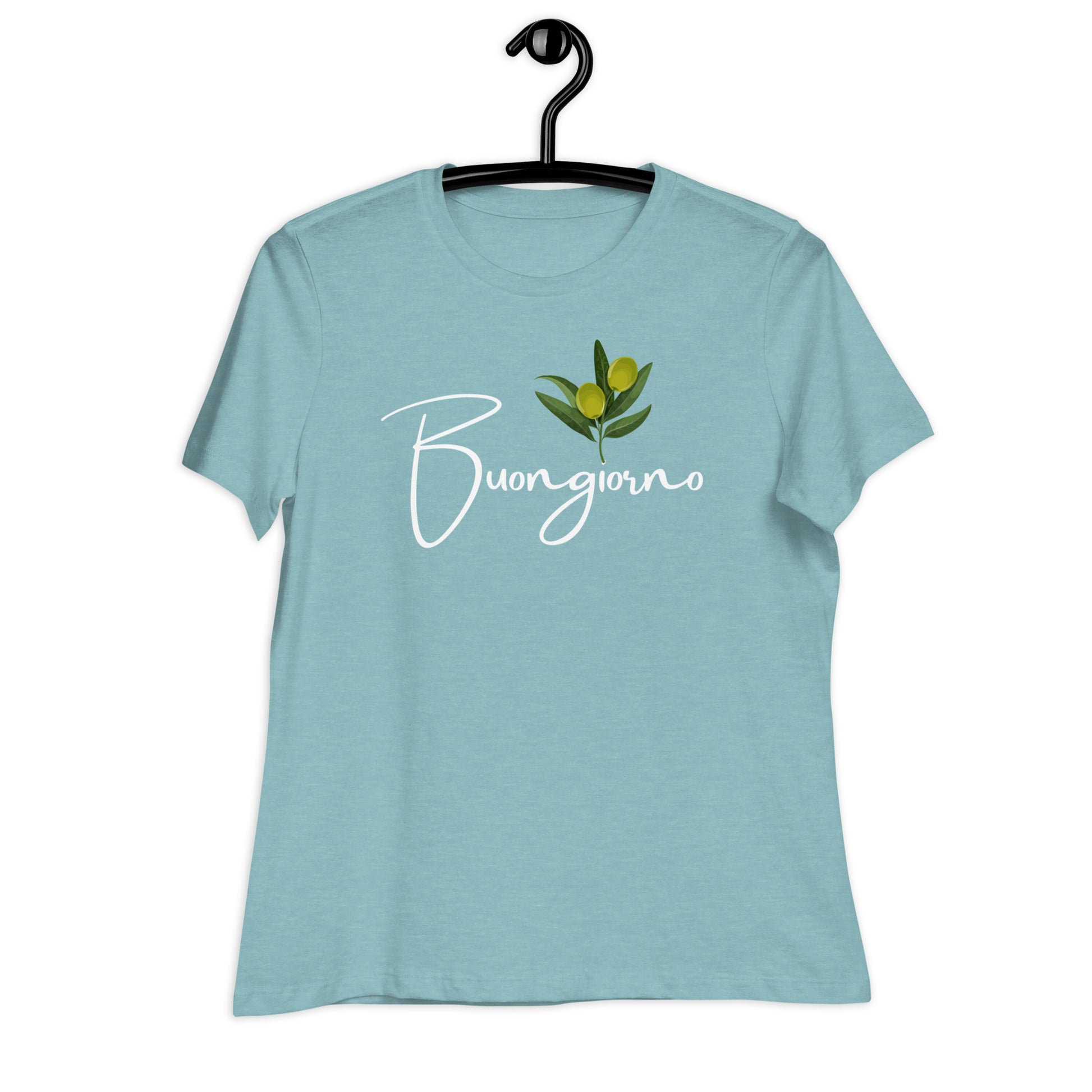 Are off to Italy? Wherever your travels lead you, a cheerful, thoughtful and respectful greeting generally goes along towards being accepted by the locals. This just might be the softest and most comfortable women's t-shirt you'll ever own. Have fun in this relaxed fit and smooth fabric tee.