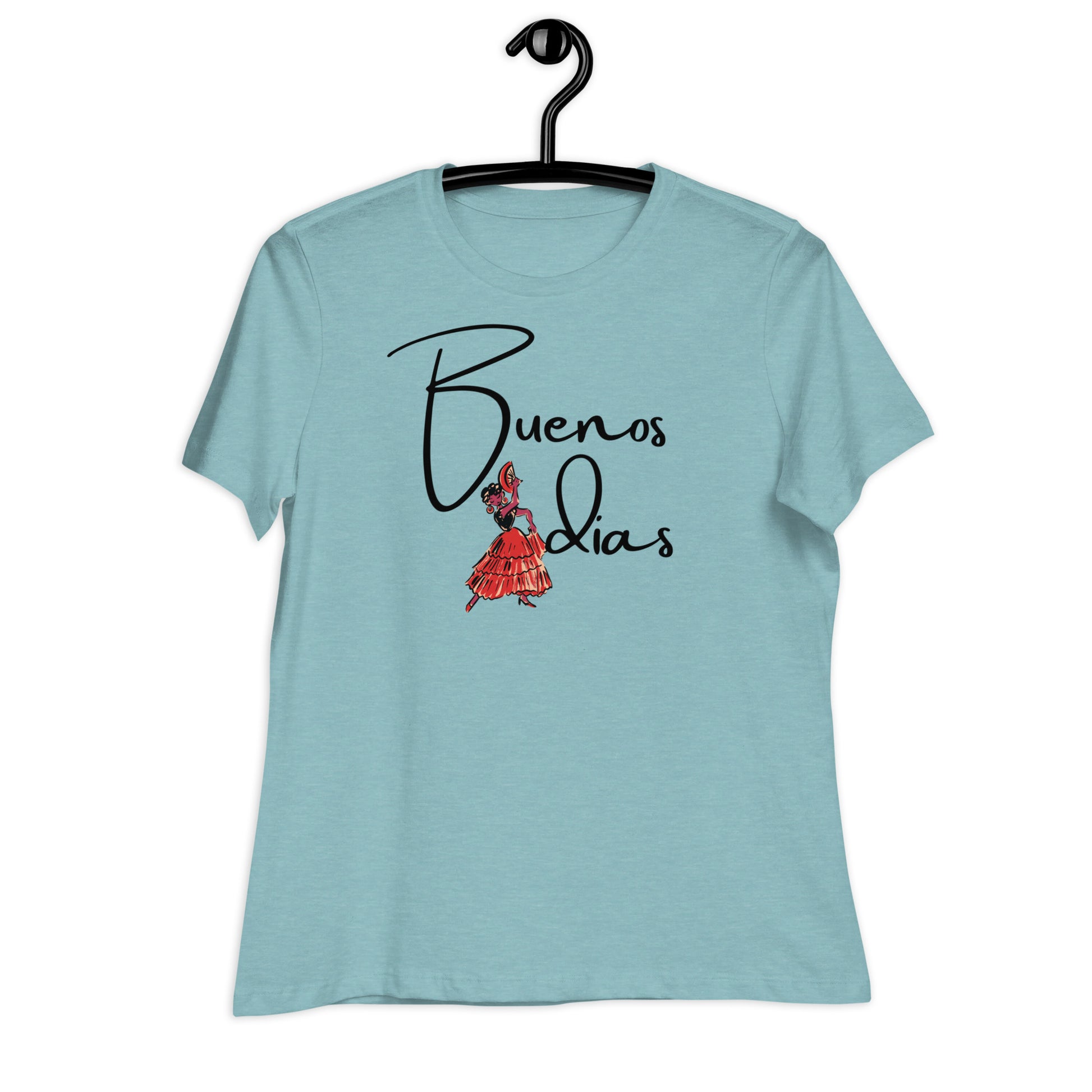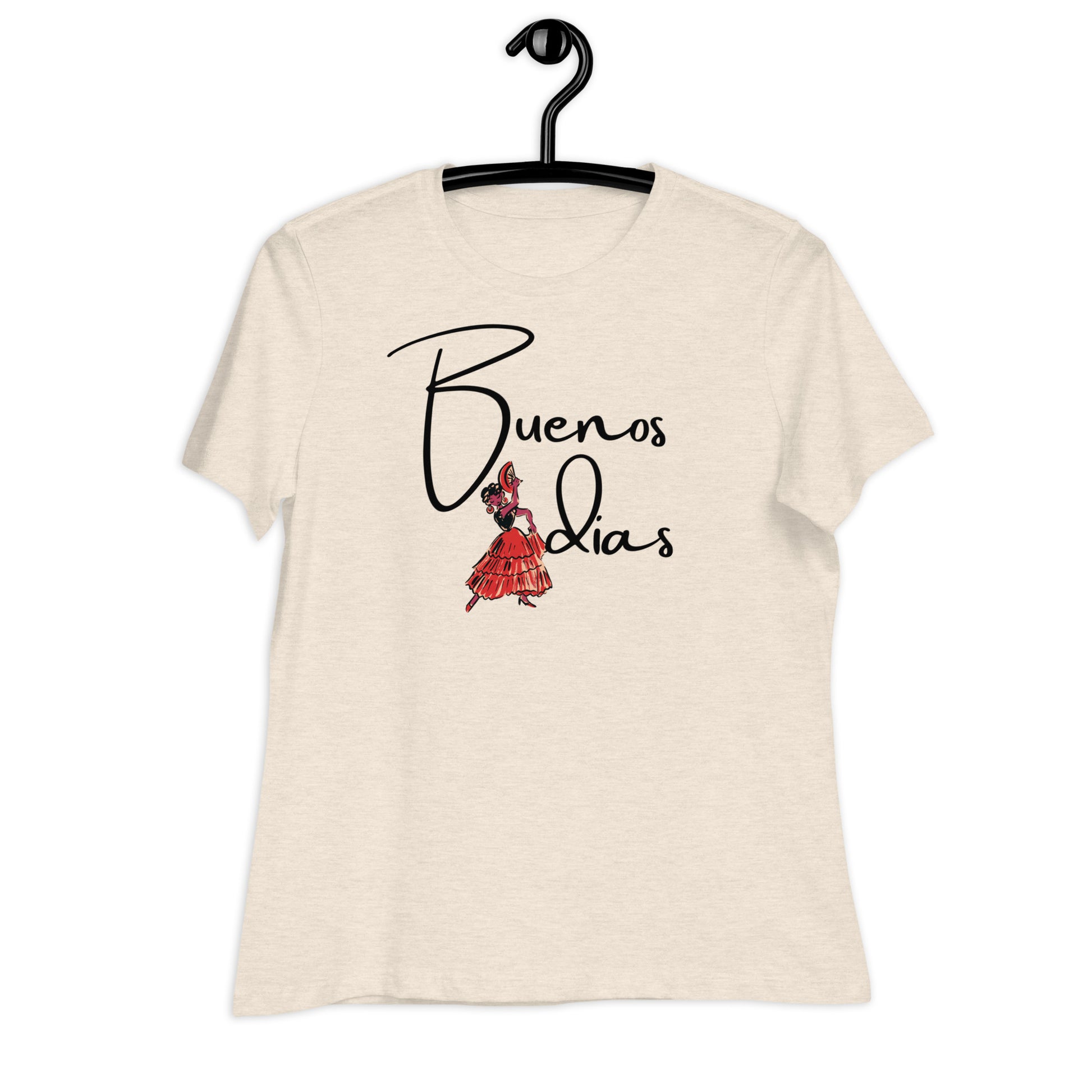 Are you off to Spain? Wherever your travels lead you, a cheerful, thoughtful and respectful greeting generally goes along towards being accepted by the locals. This just might be the softest and most comfortable women's t-shirt you'll ever own. Have fun in this relaxed fit and smooth fabric tee.